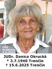 JUDr. Danica Okrucká dcéra JUDr. Vojtecha Okruckého, narodená v Trenčíne 3.7.1940, zomrela náhle 15.6.2025 v Trenčíne.